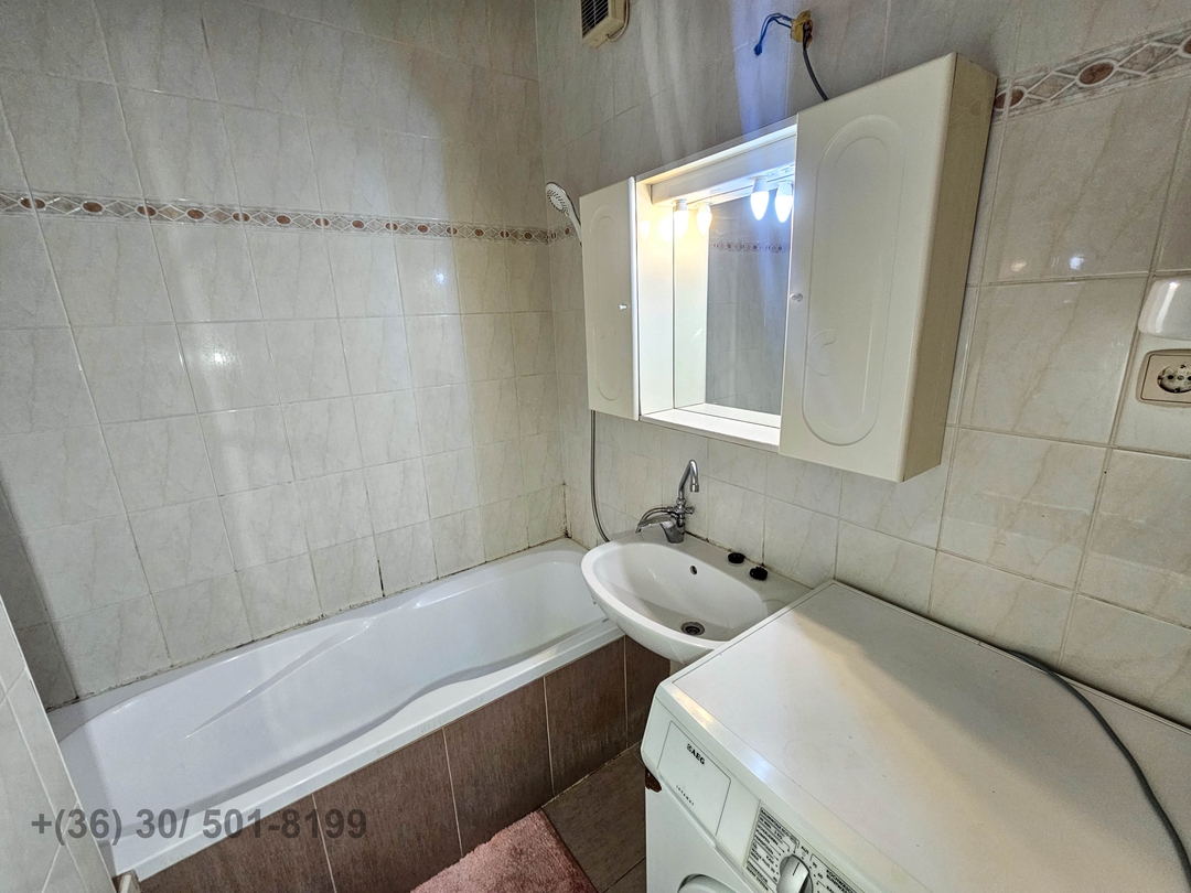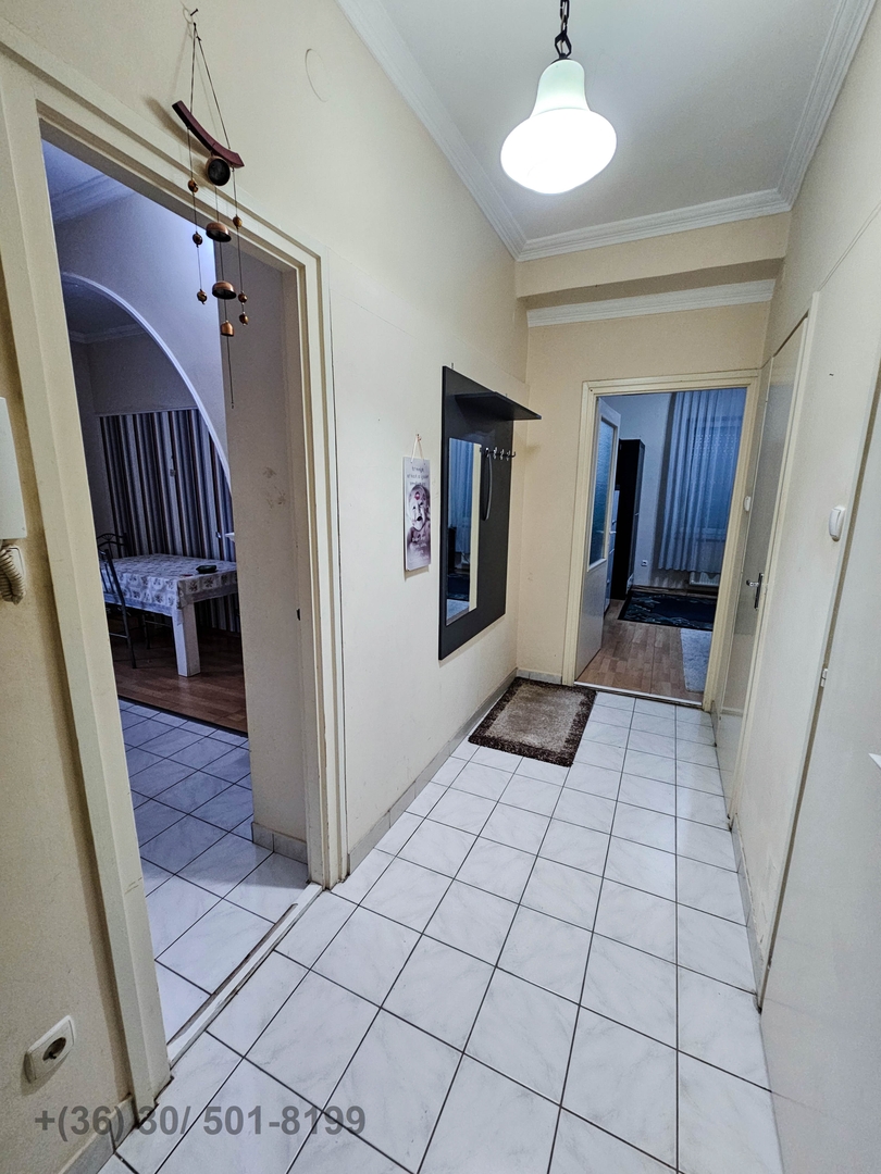 - 2 szoba, 14,5 m2-es étkező-konyha, tároló, fürdőkádas fürdőszoba, WC, közlekedő